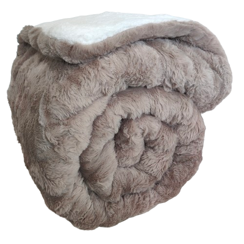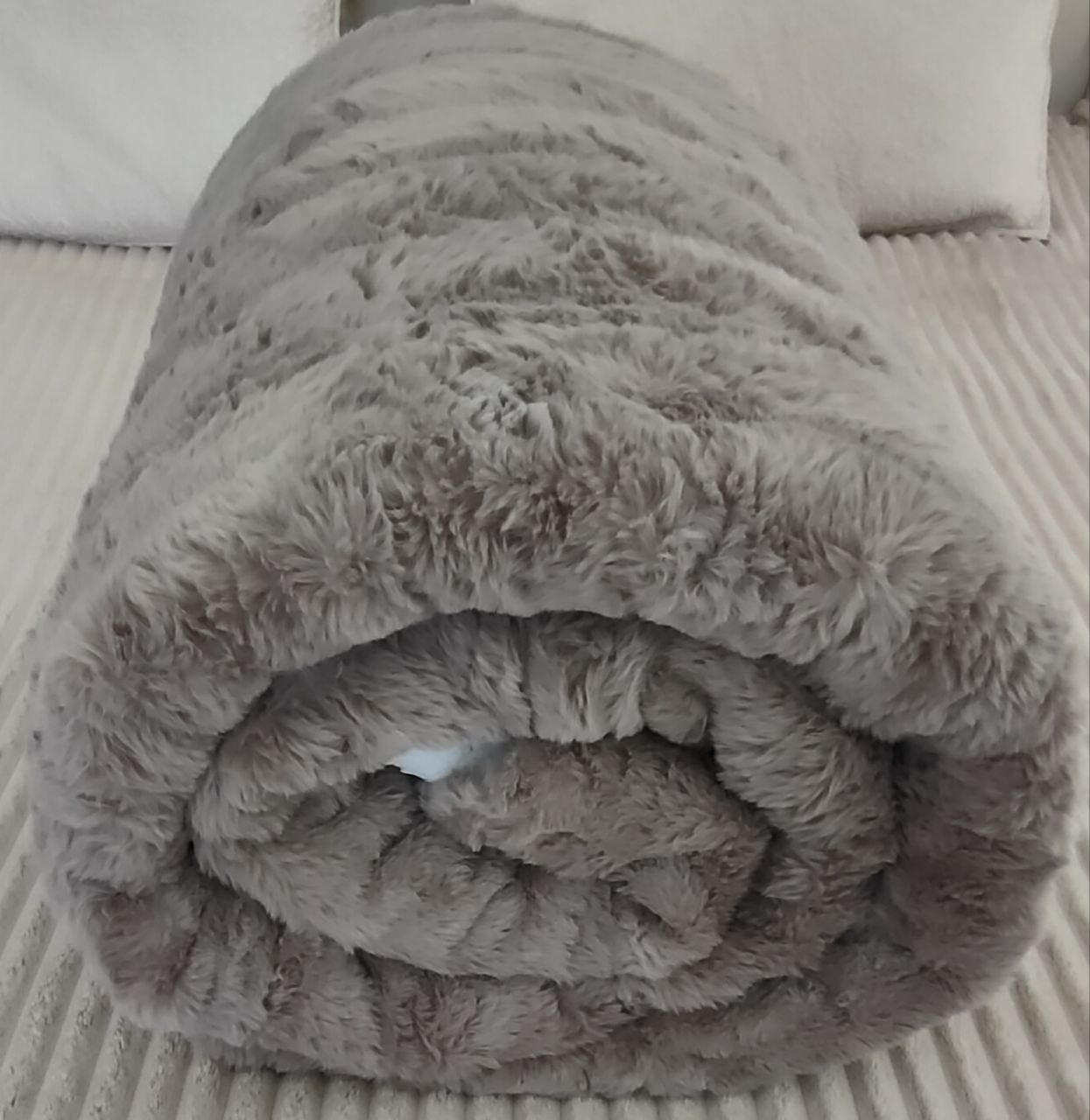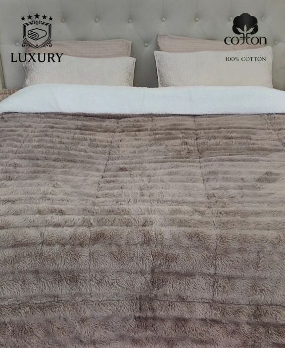 🛏️ Κουβερτοπάπλωμα Πολυτελείας “Velura Caramel” – Ψεύτικη Γούνα Κουνελιού & Εσωτερικό Προβατάκι